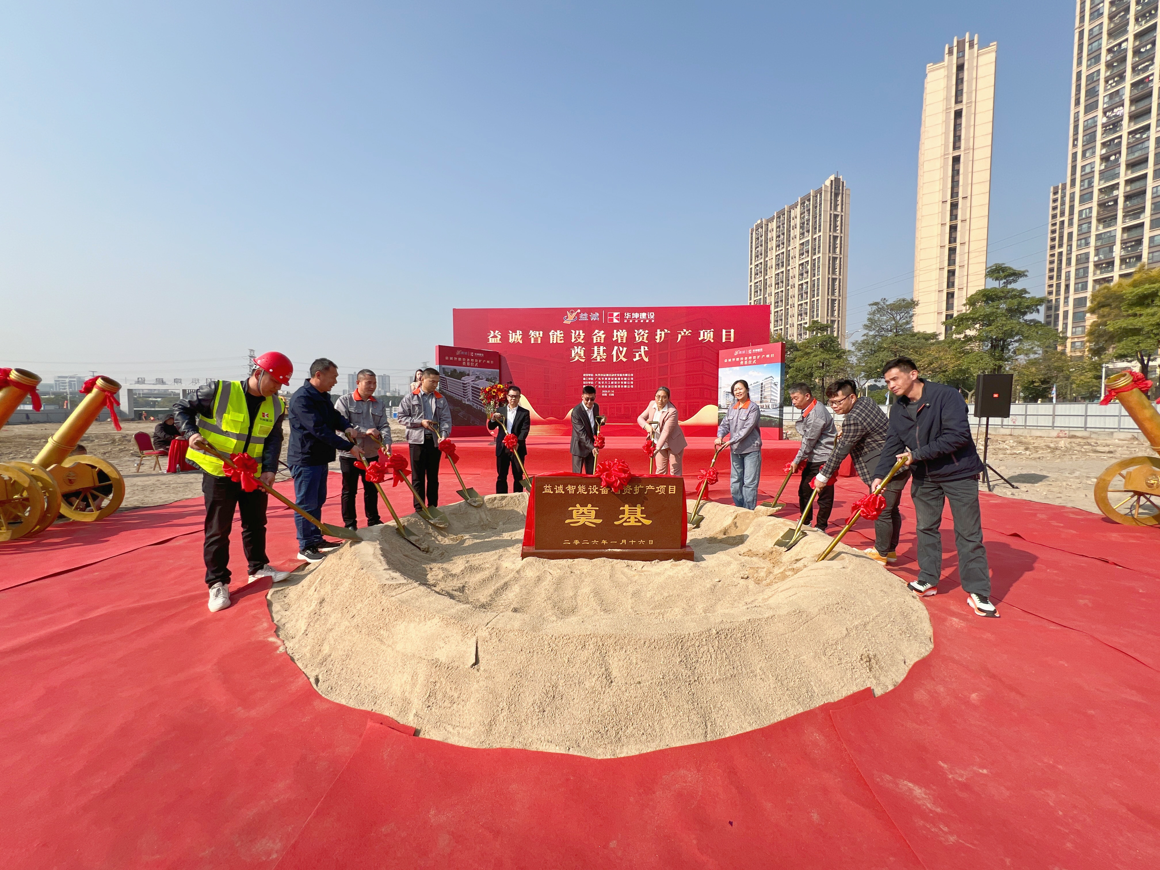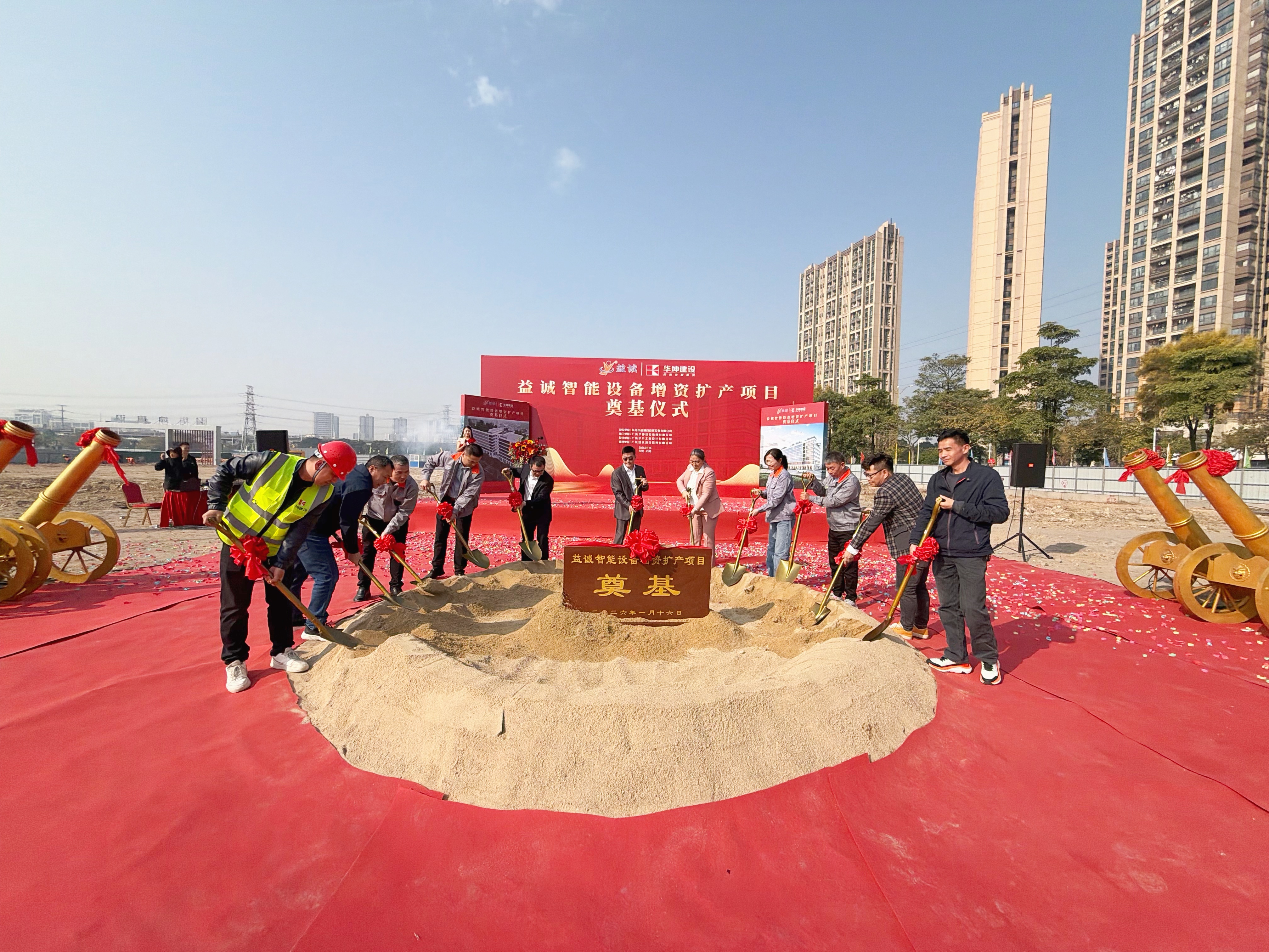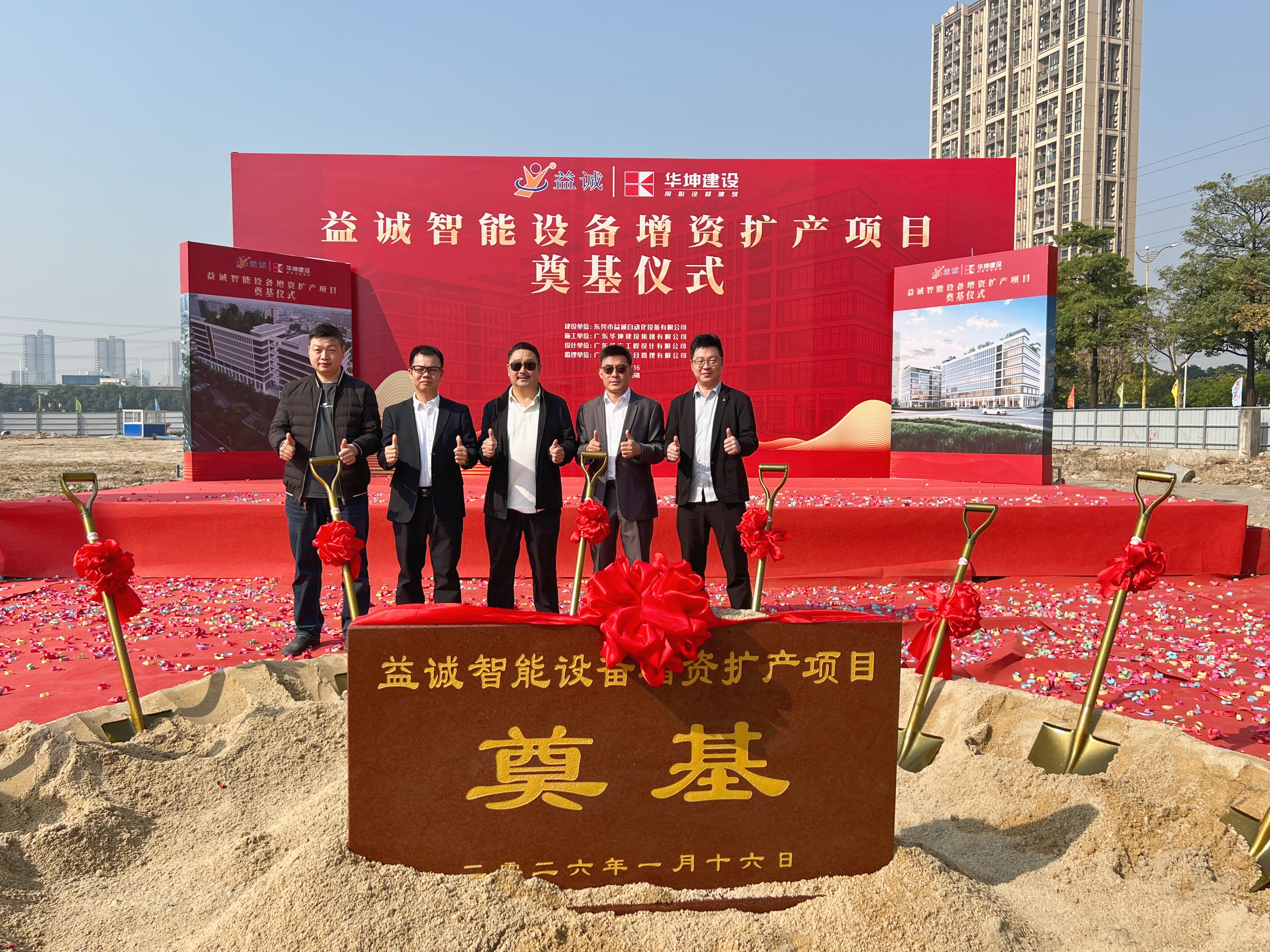 2026年1月16日,艷陽高照,晴空萬里。在這充滿希望與激情的季節(jié),益誠智能設(shè)備增資擴產(chǎn)項目奠基儀式隆重舉行。益誠自動化董事長袁董、總經(jīng)理潘總攜眾高管與本項目的設(shè)計方、施工方、監(jiān)理方等參建單位代表齊聚一堂,共同見證這一具有里程碑意義的盛典,現(xiàn)場氣氛熱烈非凡。
